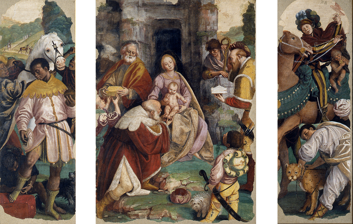 L’Adorazione vera e propria, affiancata dalle immagini del corteo dei re con paggi, cavalieri, nani e animali esotici unisce il gusto del racconto sorprendente a dettagli di commovente verità, come il re anziano che si china reverente verso il Bambino, tutto compreso nel gesto sacerdotale di benedire. Le scene di Gaudenzio, con la loro ricchezza umana e varietà di personaggi, forniranno modelli alle successive generazioni di pittori.