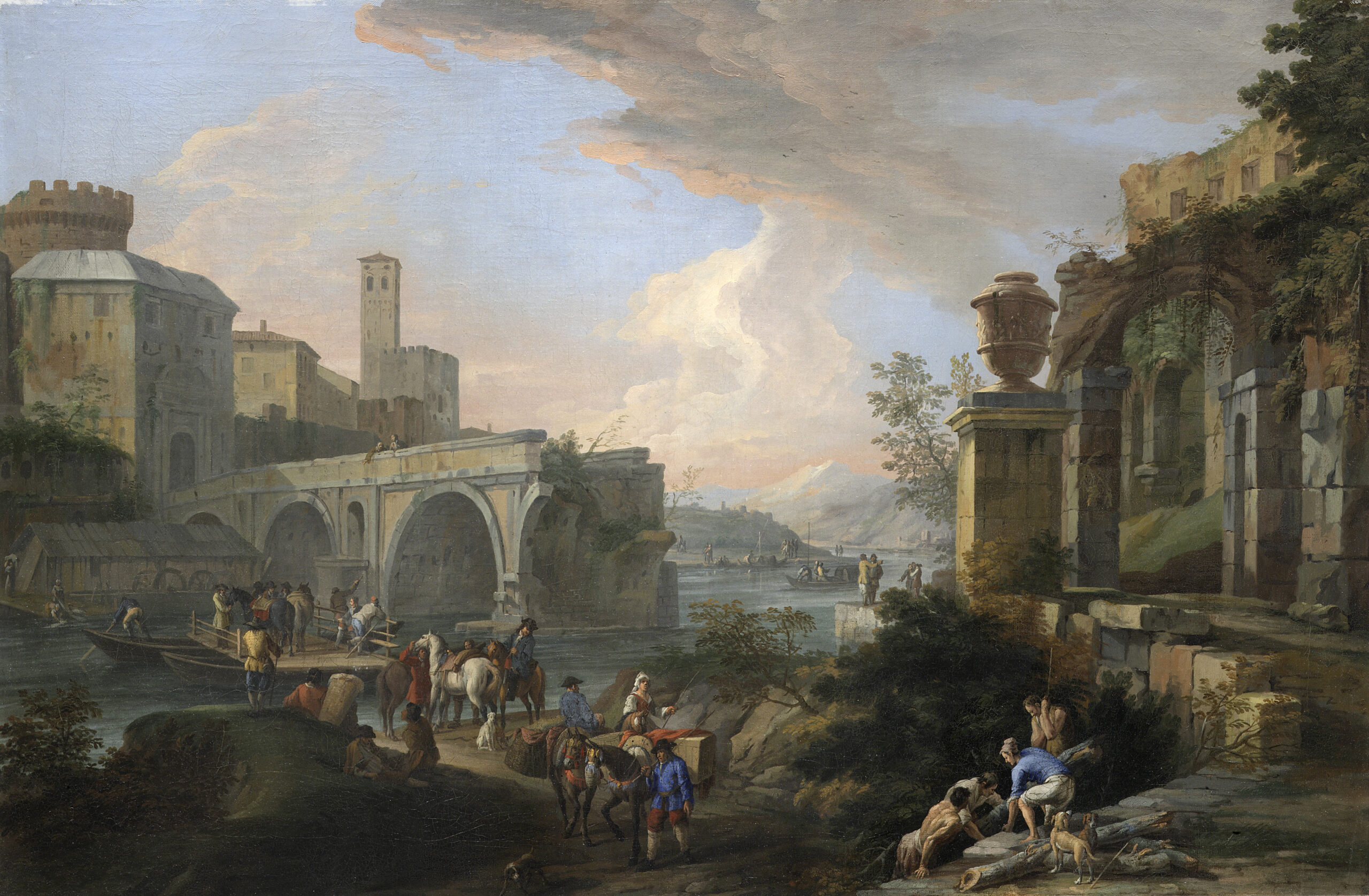 La tela, recente acquisizione della Pinacoteca, è opera di Luca Carlevarijs, friulano trapiantato a Venezia, pittore e incisore attivo nel campo del vedutismo. Raffigura il Ponte Emilio, antico ponte romano crollato per la furia del Tevere a partire dal 1598 e denominato perciò Ponte Rotto. I capricci sono paesaggi fantastici, “vedute ideate” che hanno fortuna nel Settecento e uniscono credibilità di rappresentazione a elementi d’invenzione.