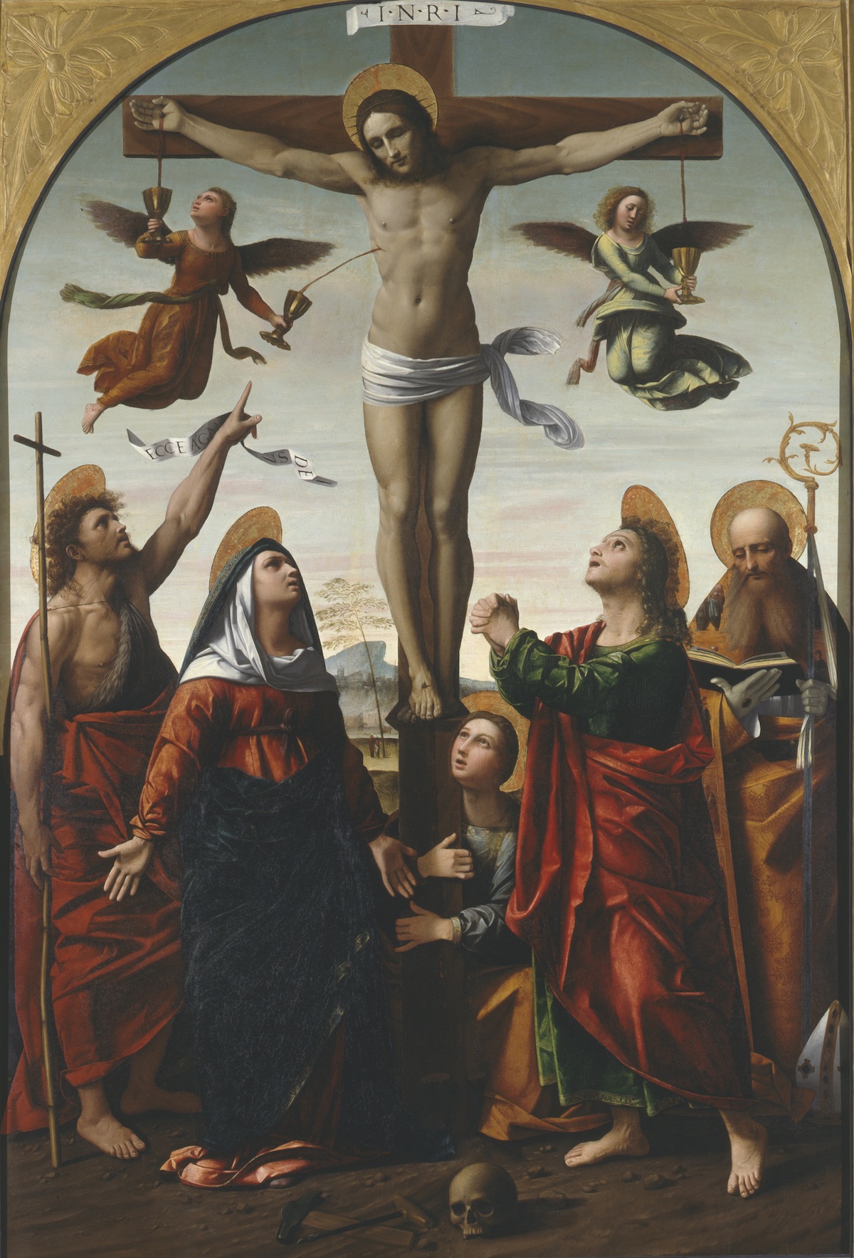 Crocifissione con la Vergine e i santi Giovanni Battista, Maddalena, Giovanni Evangelista e Agostino