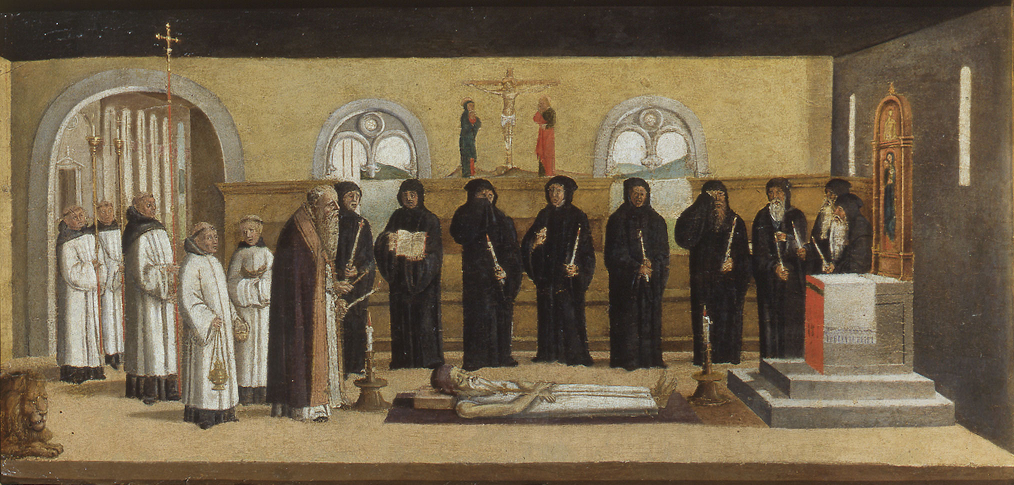 L’opera insieme alle due tavole raffiguranti San Gerolamo nel deserto e San Gerolamo porta il leone al convento, costituivano la predella della Pala di San Gerolamo, tutt’oggi conservata nel duomo di Asolo e datata dalla critica al 1485.