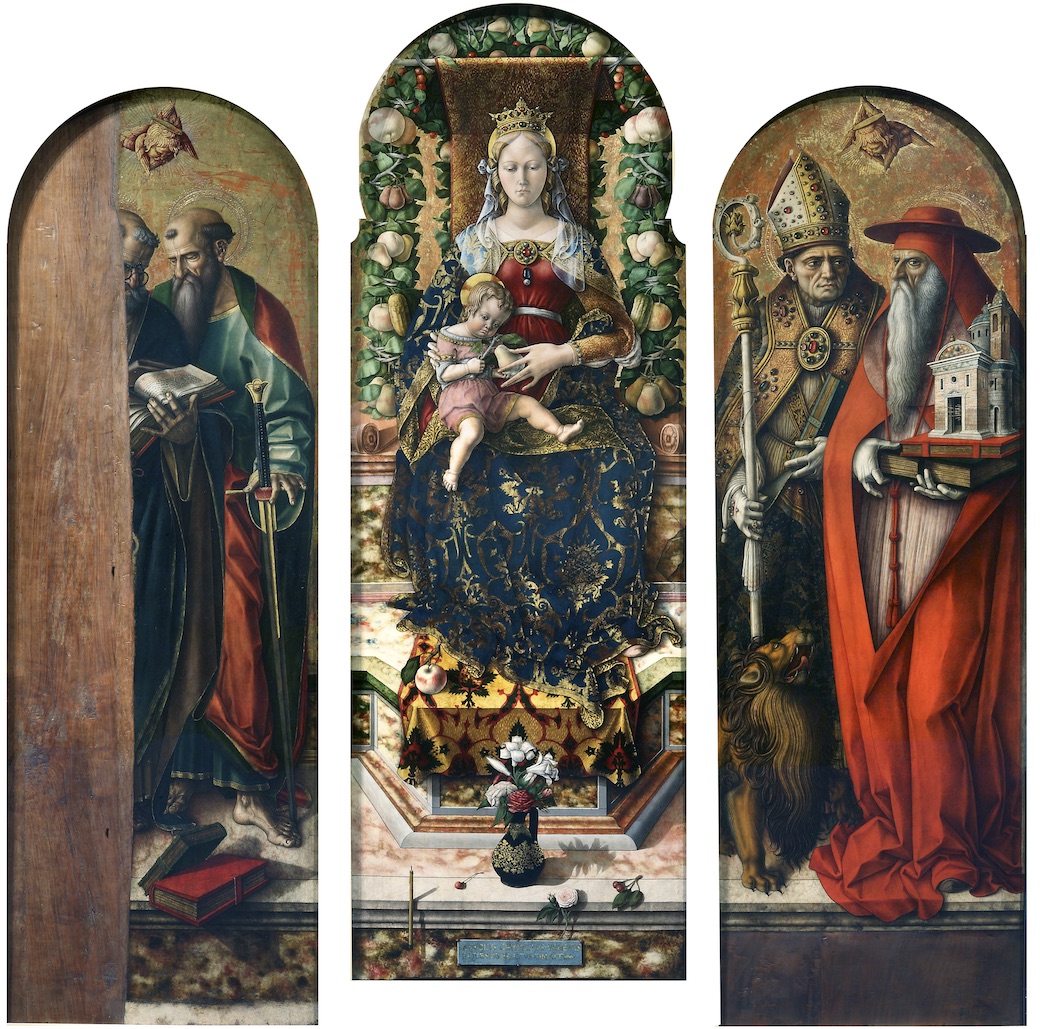 Nonostante le mutilazioni e i ritocchi che nel corso dell’Ottocento ne hanno modificato significativamente l’aspetto, l’opera è certamente una delle più misteriose e suggestive della Pinacoteca, fonte di inesauribile fascino per la profusione di elementi decorativi e per la compiaciuta esibizione di scorci illusionistici con cui Crivelli impreziosisce l’intera composizione, senza peraltro dare vita a uno spazio credibile e prospetticamente misurato: una ineguagliabile testimonianza dell’originalità con cui Crivelli rielabora i principi cardine del Rinascimento centroitaliano.