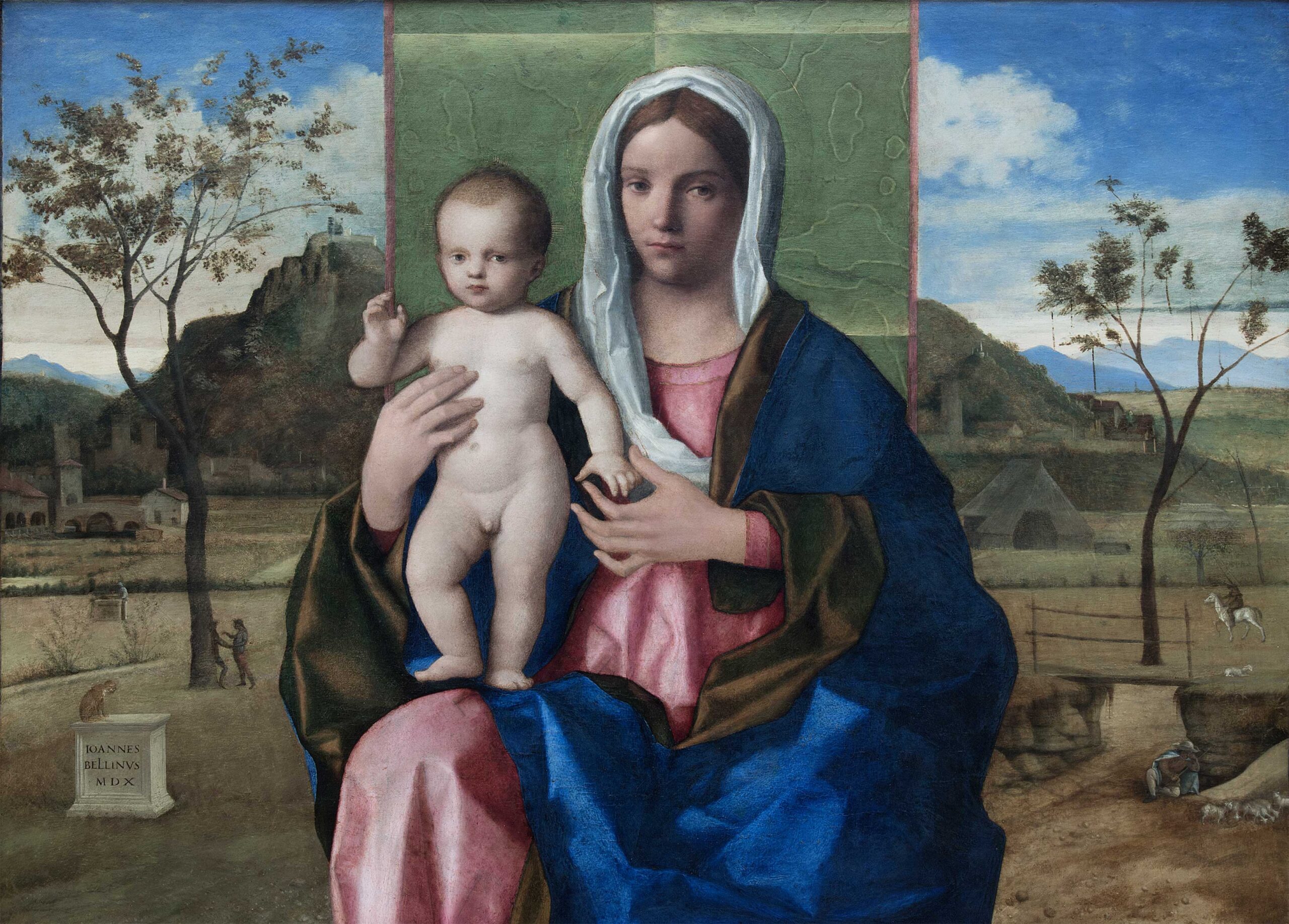 La Madonna con il Bambino, datata 1510, è l’opera più tarda del nucleo belliniano conservato a Brera. Quando la dipinse, Bellini aveva circa ottant’anni ed era una delle figure di maggiore prestigio del rinascimento veneziano, una sorta di carismatico patriarca il quale, a fine carriera, si mostrava in grado di recepire e guidare un nuovo mutamento di gusto.