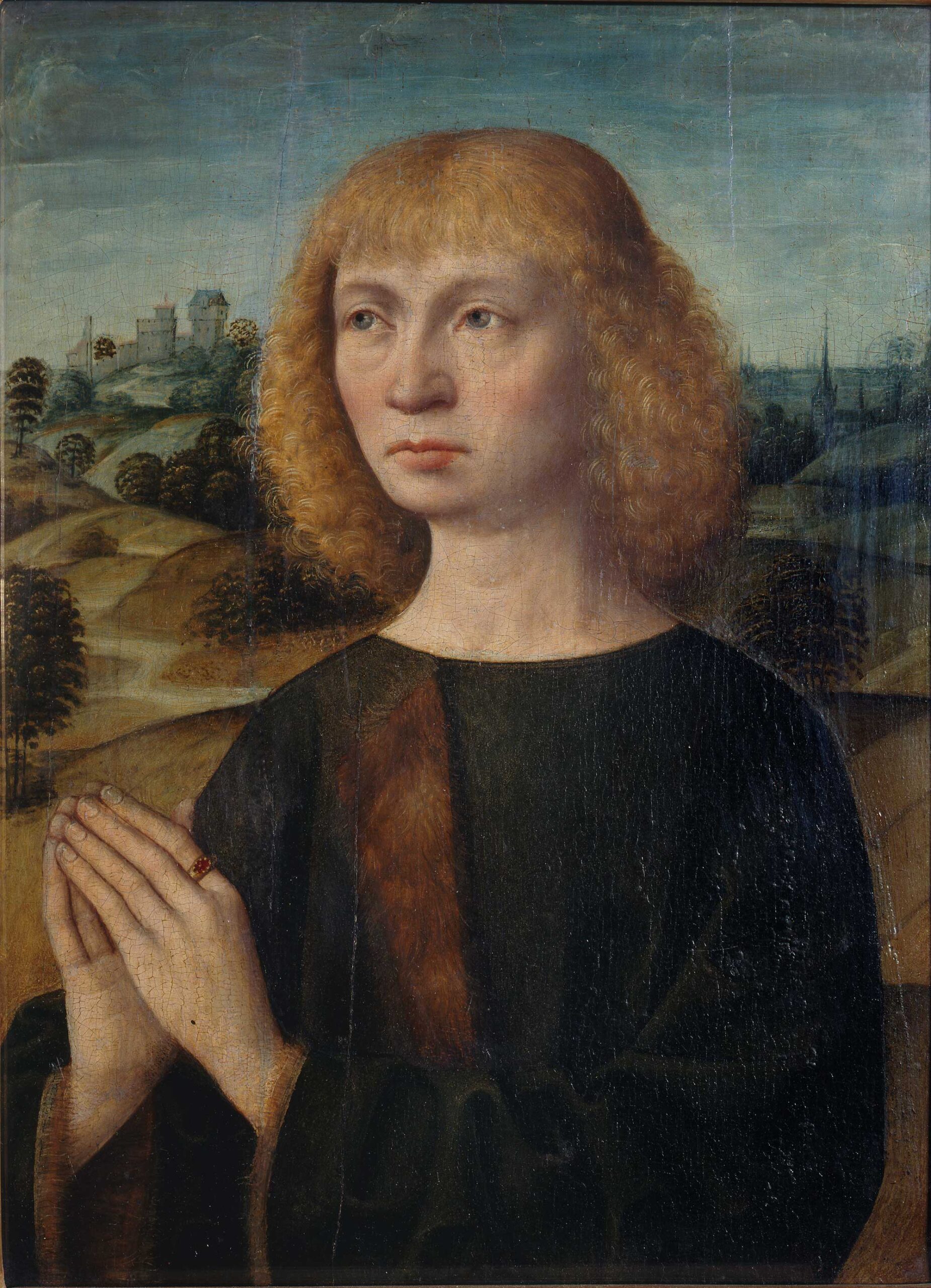 Attribuito con una certa sicurezza a Herman Rode, artista tedesco che a lungo operò nei Paesi Bassi durante la seconda metà del XV secolo. La tavoletta doveva far parte di un dittico la cui valva sinistra rappresentava l’immagine sacra verso cui era rivolto in preghiera l’uomo ritratto.