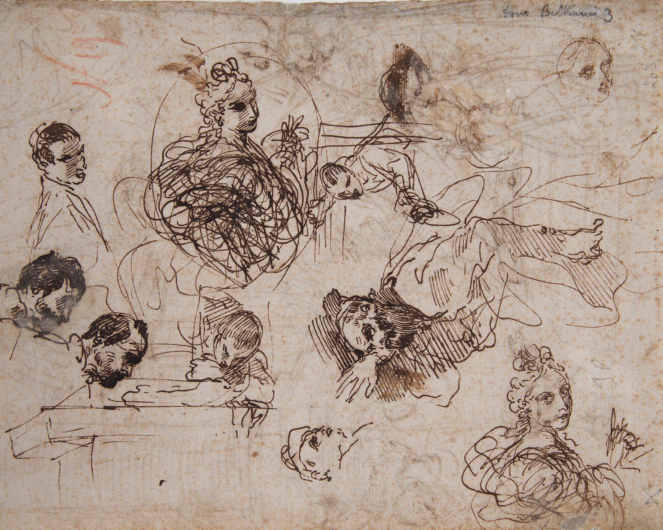 Studi di figure e di teste (verso) – Studio per l’Elemosina di san Gregorio (recto) -