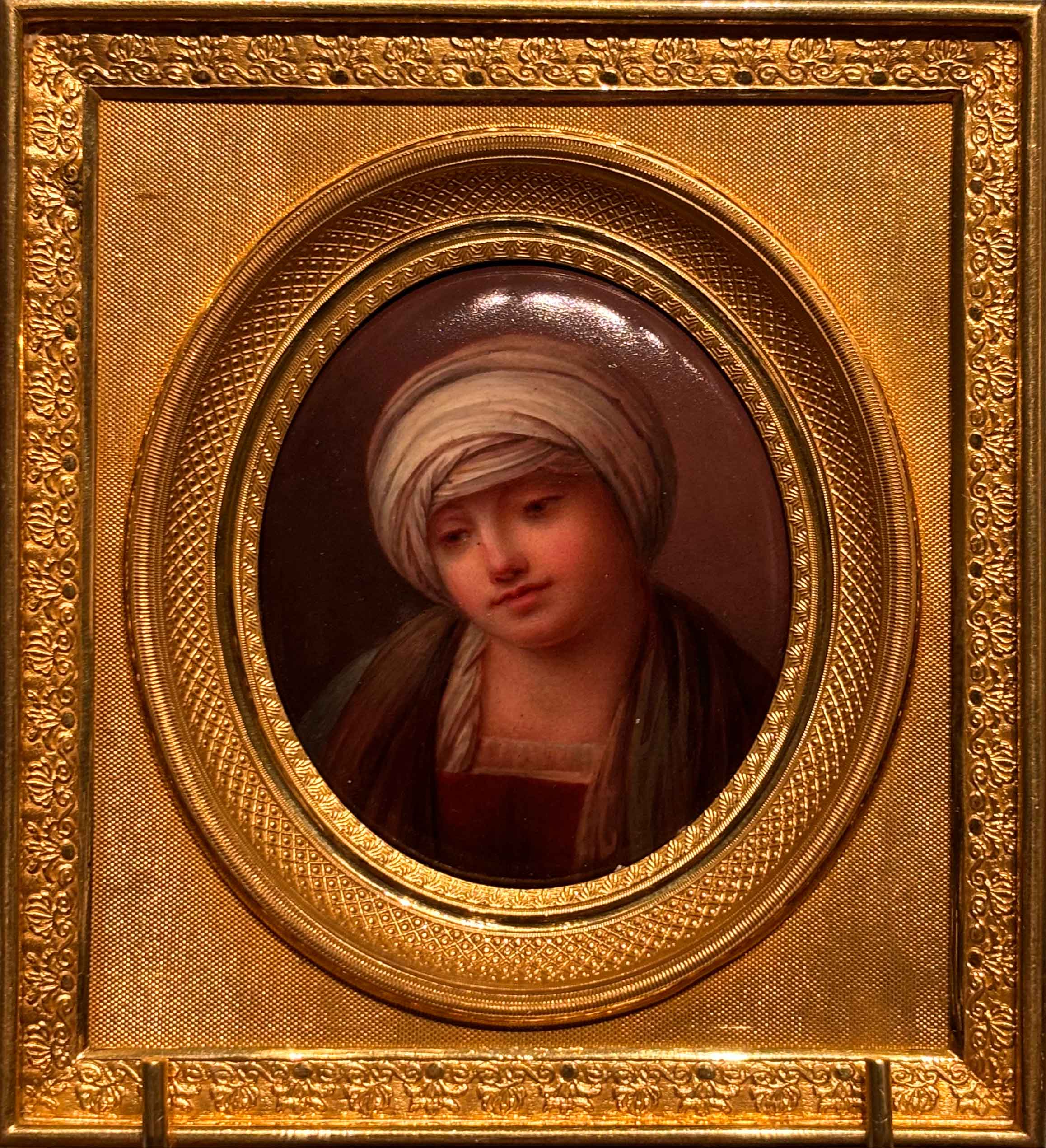 Miniatura a smalto d’apres inquadrata da cornice in bronzo dorato, donata da Emilia Sommariva Seillière alla Pinacoteca di Brera nel 1873.