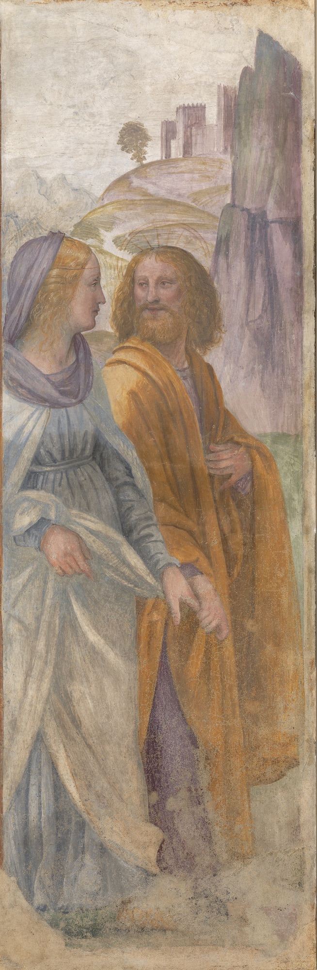 Starting from the left with the announcement of Mary’s birth to Joachim and Anna, the scenes depict episodes from the Virgin’s early life. In the background we see the angel persuading Joseph to marry Mary and the two newly-weds at prayer. At this stage in his career, Luini was influenced chiefly by Bramantino and by his friend Zenale, and he used assistants to help him paint the fresco cycle.